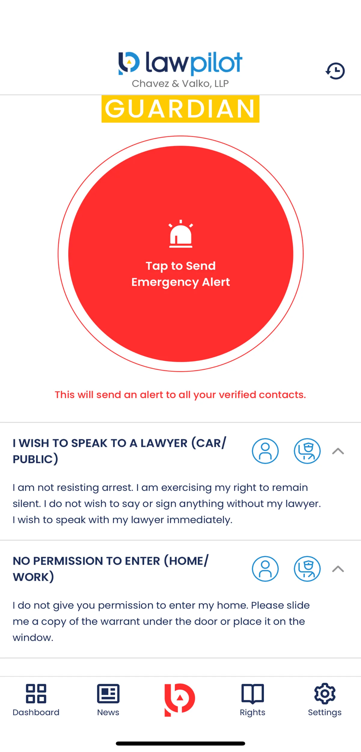 Lawpilot Guardian helps Chavez & Valko clients protect themselves during immigration related encounters by providing immediate guidance and connection tools when stress is high.