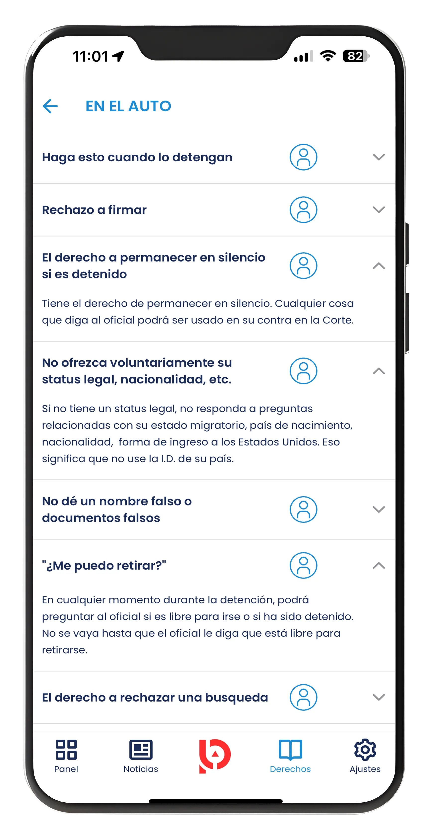La aplicación Lawpilot Guardian ayuda a los clientes a mantenerse informados y preparados sin costo alguno, con la opción de actualizarse para obtener funciones adicionales diseñadas para brindar un apoyo legal más profundo y una protección mejorada en momentos críticos.