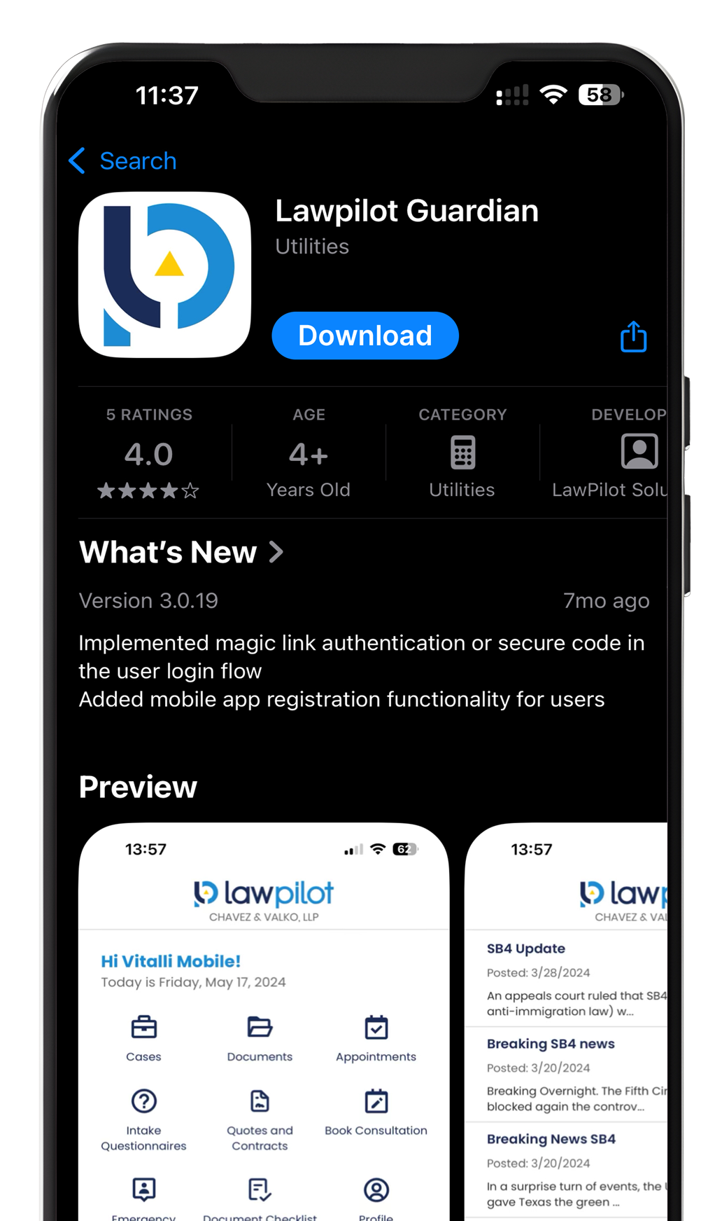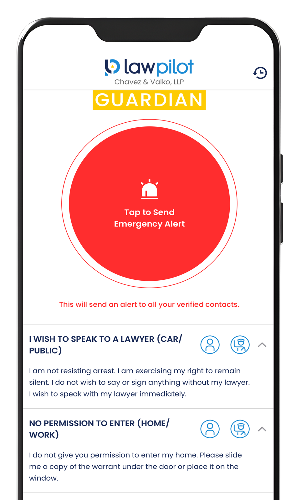 Lawpilot Guardian is free to download and gives clients access to essential emergency guidance and preparedness tools. Optional paid plans are available for those who want added legal protection, attorney-connected support, and extra peace of mind.